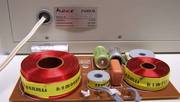 Diese Spule ist in Reihe zum Basschassis geschaltet und filtert (sperrt) die hohen Töne in Verbindung mit einem Kondensator, ein typischer passiver Tiefpaß. Dort wird also die Verstärkerleistung im Verhältnis 0,7 zu 3,0 "verbraten". Es kommen also nur etwa 80% der Bassleistung beim Chassis an. Die zweite noch geschlossene P4302 Box hat von außen gemessen 3,9 Ohm.