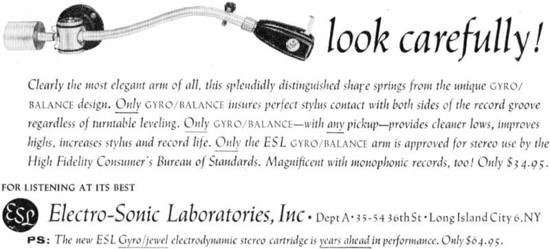 PS: The new ESL Gyro'jewel electrodynamic stereo cartridge is years ahead in performance. Only $64.95.