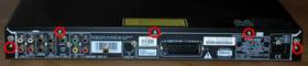 Vor dem Öffnen des Players entfernen Sie alle Anschlüsse vom Player. Die Bilder unten zeigen welche Schrauben zum Öffnen des Player herausgedreht werden müssen (roter Kreis).