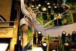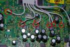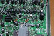 Wie Sie auf dem ersten Foto sehen, muss die abgeschirmte Leitung, die von der Platine des Pioneer 585A/588A auf die Netzteilplatine geht, aufgetrennt und wie auf dem Foto mit Pin 2 und Pin 3 des Flachbandkabels verbunden werden.