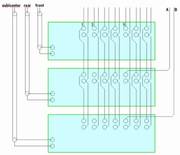 Wie man sieht, werden bis auf Pin 3 und Pin 9 alle Signale an die drei Platinen durchgereicht. Pin 9 ist der jeweilige Eingang der zweiten und dritten Platine.