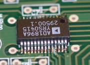 Der Punkt des AD1896 muss in der oberen rechten Ecke sein! Nehmen Sie sich zum Einlöten des AD1896 Zeit. Es ist sehr viel schwieriger als das Einlöten des CS8406!! Überprüfen Sie das Ergebnis unbedingt mit einer Lupe.