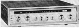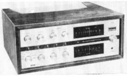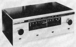 Specifications: 18 transistors, 8 diodes; Quadra-Tuned front end ; 4 i.f. stages ; wideband detector; 2 audio stages; D-Arsonval tuning indicator; output signal 1.75 volts; 4 outputs ; controls-"Stereo Logic," muting, tuning ; switches-a.f.c.-defeat, stereo-defeat, local-suburban-distance, on-off; freq. resp. ± % db from 5 to 50,000 cps ; signal-to-noise ratio 70 db ; IHF volume sensitivity 0 uv ; capture ratio 4 db ; selectivity 250 kc at 3 db ; IHF usable sensitivity 2.0 uv ; AM suppression 60 db ; harmonic distortion (100% mod.) 0.1%; stereo separation 30 db ; switching stereo circuit ; solid-state a.f.c. circuit; drift ±5 kc; dimensions: 14 1/16" wide, 3%" high, 8" deep ; weight, 20 lbs.