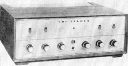 • 500-C 75-Watt Stereo Multiplex Receiver. The FISHER 500-C consists of an FM-multi-plex tuner, a master audio control center, and a 75-watt dual-channel power amplifier combined on the same chassis. Featuring four wide-band i.f. stages, three short-time-constant limiters, and a 1-mc-wide detector bandwidth. Multiplex is derived by the use of a synchronous oscillator in conjunction with two balanced diode bridges. The control center provides facilities for tape monitoring, a full complement of controls and filters, and an earphone jack. "Stereo Beacon" automatically switches the receiver between the stereo- and monophonic modes of operation.