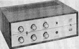 Specifications: Freq. resp. 30 to 90,000 cps ±1 db at 1 watt output; IHP music power output, 25 watts per channel; power output, rms, 20 watts per channel; harmonic distortion, 0.5% at 20 watts; IM distortion 1% at 20 watts; hum and noise, 80 db below 20-watt output; sensitivity, input for rated output-phono, 5 mv, tuner, 0.075 volts; damping factor 22 ; output impedances, 4, 8, 16 ohms; inputs--2 phono, 1 tape head, 1 tape amp, 1 aux, 1 Mic ; weight, 25 lbs. Dimensions, 15" wide, 5" high, 11" deep.