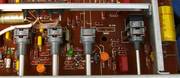 Der Kopfhörer-Ausgang hat diese verdammte (deutsche) Quad-Buchse, für die es schon seit ewigen Zeiten keine Kopfhörer (oder Adapter) mehr gibt. Doch dieser Ausgang hat in diesem Preceiver einen separaten Kopfhörerverstärker in Gegentakttechnik bekommen, der ganz hinten auf der Platine wohnt. Ob die Grundigs bei Ihrem XV 5000 Vorverstärker da (etwa in 1981) gespickt hatten ?