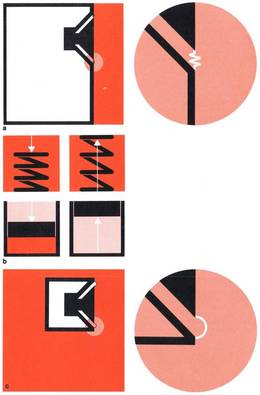 Für die Exaktheit der Membranbewegung gibt es jedoch praktische Genzen. Eines der wichtigsten Kriterien ist hierbei die Aufhängung der Lautsprecher- Membrane am Metallrahmen. Da keine mechanische Aufhängung unbeschränkt dehnbar ist, verhindert sie große Membran- auslenkungen und ruft Klangverfälschungen hervor. Tiefe Baßtöne erfordern die größten Membranauslenkungen. Diese Töne sind es auch, die bei herkömmlichen Lautsprecher-Systemen die größten Verzerungen enthalten (a).