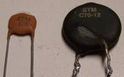 Wenn man in solche Netzteile rein schaut, sieht man eine Menge ähnlicher Bauteile. Denn Thermistoren, Varistoren und Kondensatoren sehen sehr sehr ähnlich aus. - Varistoren machen dabei etwas ganz anderes. Sie werden mit jedem "Bein" direkt auf die Netzzuleitung gelötet. Übersteigt die Eingangsspannung einen bestimmten Wert, zum Beispiel 350 Volt, geht der sehr hohe Widerstand schlagartig auf nahezu 0 Ohm runter. So werden die unerwünschten extrem hohen, aber sehr kurzen Spannungsspitzen, aus dem Netz gekillt - kurz geschlossen.