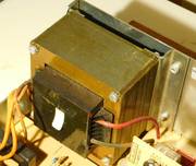 Ein damals noch vorhandener Aufkleber gibt Auskunft, es soll ein 220 Volt / 50Hz und 99 Watt(VA) Type auf einem M85 Kern sein. Auch die Sekundärleistung mit 2 x 18 Volt und 2 x 2,75 Ampere ist spezifiziert.