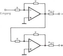 Genauso läßt sich durch entsprechende Bemessung der Widerstandswerte die Ausgangsimpedanz einstellen. Allerdings wird ein gewisser Widerstand vom Ausgang nach Masse benötigt, um zu verhindern, daß die Ausgangsspannung auf eine der beiden Betriebsspannungen hochläuft, wenn ein massefreier Eingang angeschlossen ist.