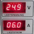 Bei 2 Ampere Laststrom sank die Spannung auf 25,1 Volt= (alles vor der Regelung auf 24 Volt=.)