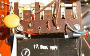 Beachten Sie auch, wie die beiden elend langen Skalenseile um alle nur möglichen Umlenkrollen geführt wurden. Auch sind hier bereits 3 von 10 oder mehr Glühlämpchen zu sehen, von denen nur noch 2 ihren Dienst tun. Ob das dem Trafo den Strom herausgesaugt hatte ?